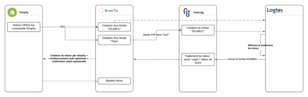 | Fermeture du retour Shopify | Création d'un AVOIR dans Fastmag du montant de l'échange avec prise en compte des frais de retour |