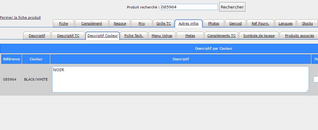 - Cliquez sur l’onglet Autres infos, puis Descriptif Couleur.