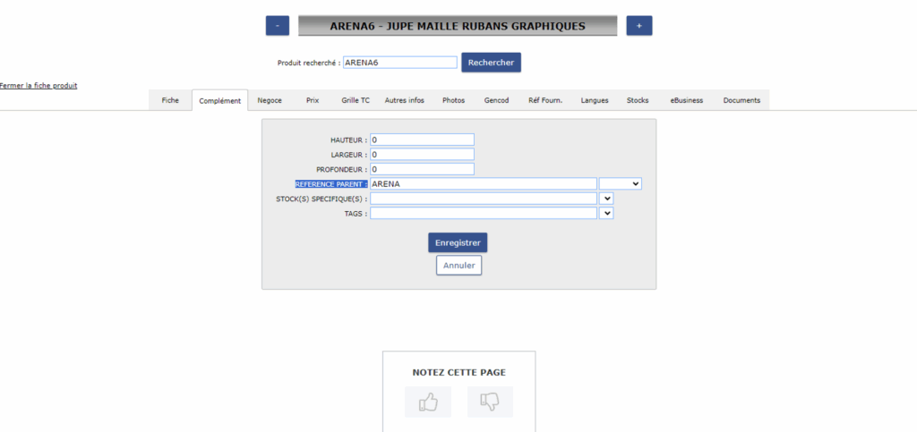 - Retournez sur l’onglet Fiche pour enregistrer le produit.