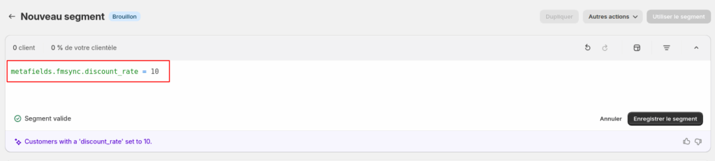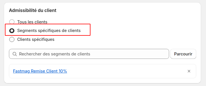 - Pour la réalisation de ventes privées, veuillez indiquez le motif “VP” dans les règles. Cela permet d’avoir une accessibilité aux remises que pour les clients connectés dans Shopify.
