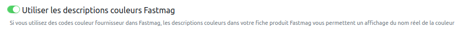 - Dans la page, activez l’option “Utiliser les descriptions couleurs Fastmag”.