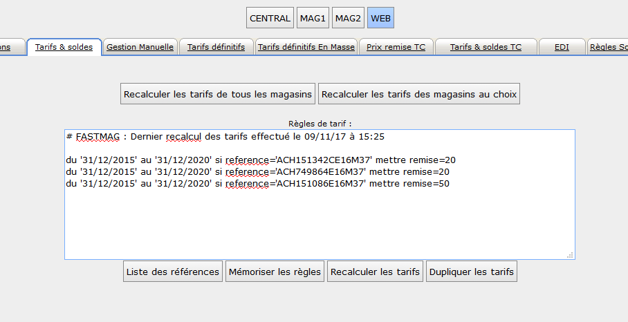 Vous pouvez gérer les soldes depuis votre magasin dédié à votre activité WEB et éditez vos soldes de la même manière que pour vos magasin physique. De notre côté, l’application gère les règles de remises par produit ainsi que par taille/couleur.