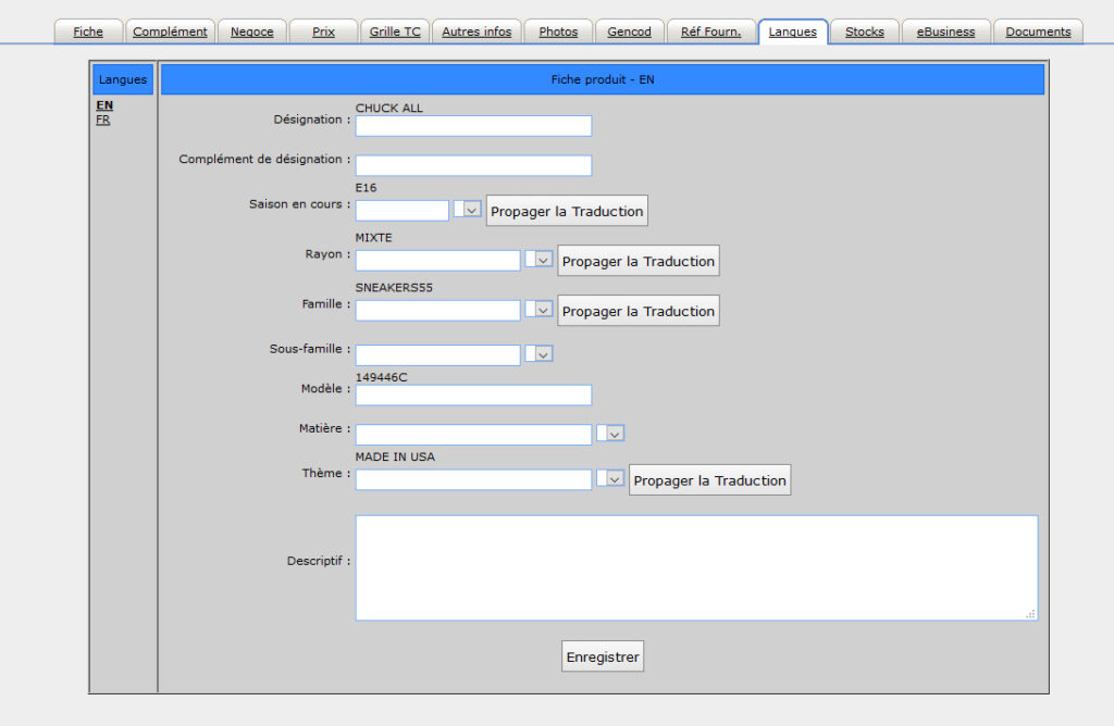Important : Nous prenons en compte les traductions que si, à minima la traduction de la désignation est renseignée.