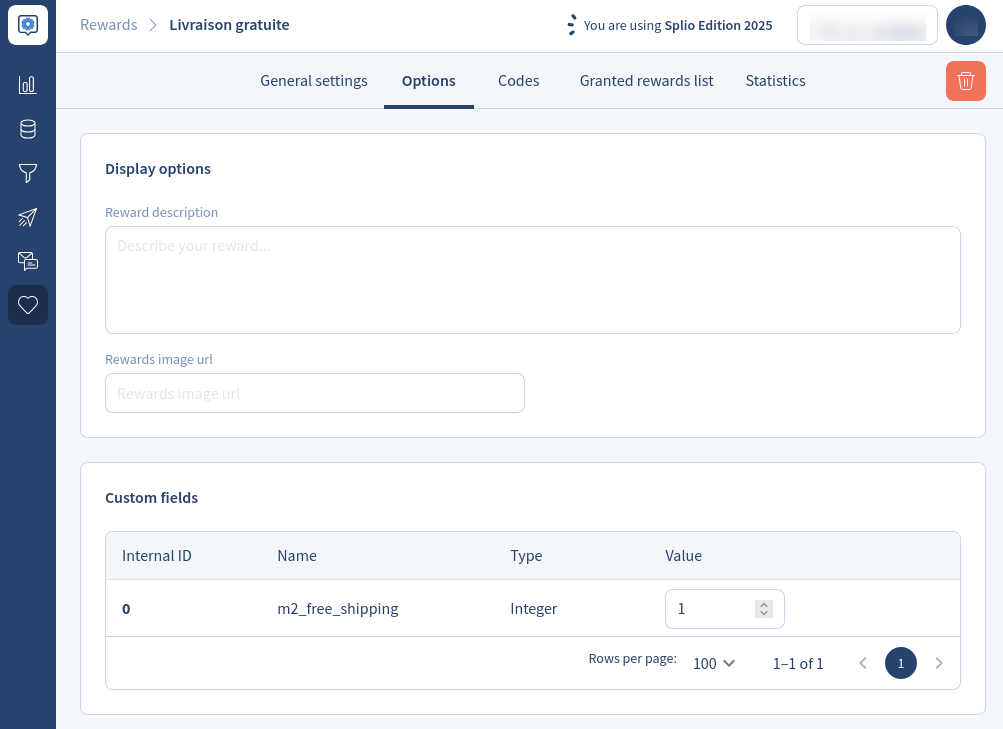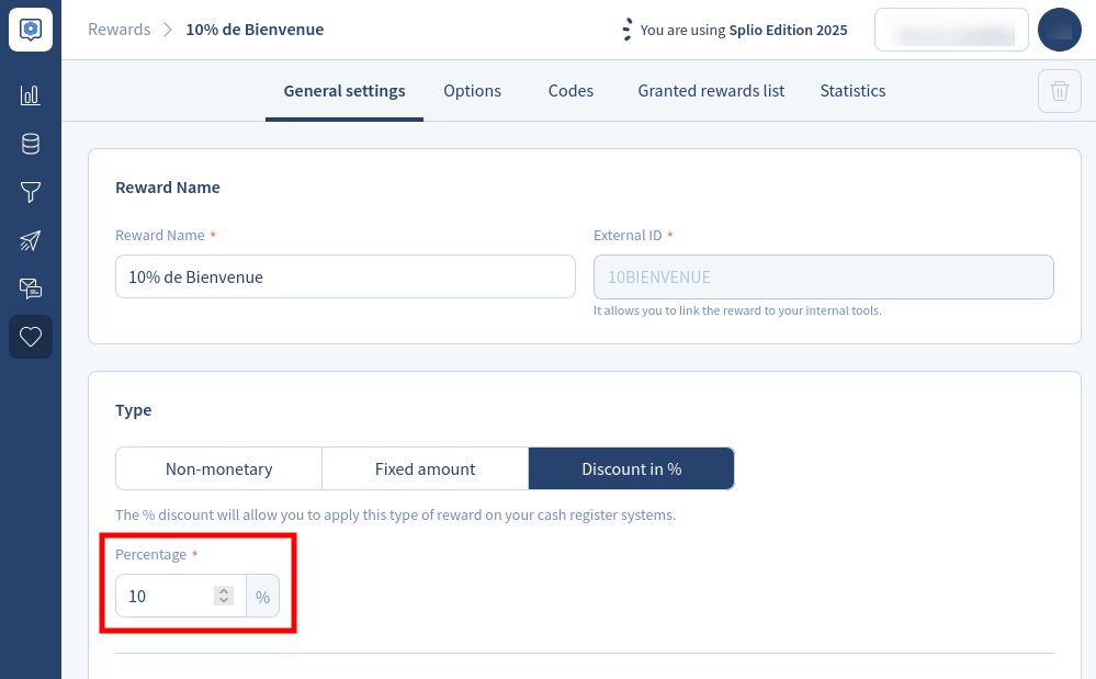 Currently, the extension supports three types of rewards: fixed amount, percentage discount (both native to Splio Loyalty), and free shipping discount.